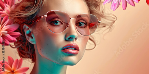 woman, summer, vacation, fashion, sunglasses, retro, vintage, collage, poster, generative, ai, beauty, face, hair, model, goggles, glamour, lip, mask, carnival, person, style, people, fun, make-up, red, 1, lady, outdoors