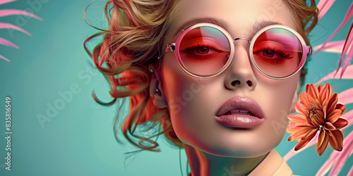 woman, summer, vacation, fashion, sunglasses, retro, vintage, collage, poster, generative, ai, beauty, face, hair, model, goggles, glamour, lip, mask, carnival, person, style, people, fun, make-up, red, 1, lady, outdoors