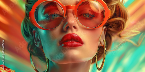 woman, summer, vacation, fashion, sunglasses, retro, vintage, collage, poster, generative, ai, beauty, face, hair, model, goggles, glamour, lip, mask, carnival, person, style, people, fun, make-up, red, 1, lady, outdoors