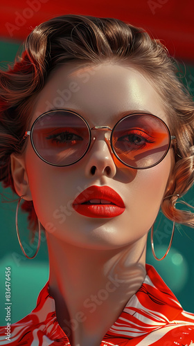 woman, summer, vacation, fashion, sunglasses, retro, vintage, collage, poster, generative, ai, beauty, face, hair, model, goggles, glamour, lip, mask, carnival, person, style, people, fun, make-up, red, 1, lady, outdoors
