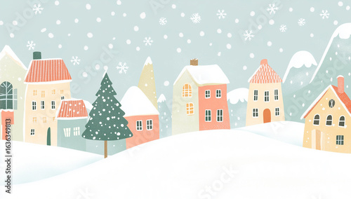 christmas, winter, city, house, home, town, background, building, cold, flat, copy space, copy space, snowy, retro, illustration, village, vintage, holiday, city landscape