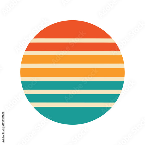 retro, sunset, circle, graphic design, vintage, poster, print, design element, illustration, colourful, stripes, orange, yellow, teal, summer, warm colors, minimalist, geometric, abstract, 70s, 80s, trendy, aesthetic, home decor, background, pattern, vector