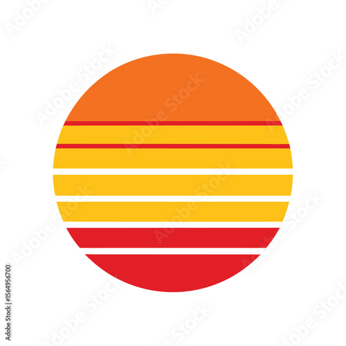 Retro Sunset Icon with Orange Red and Yellow Stripes