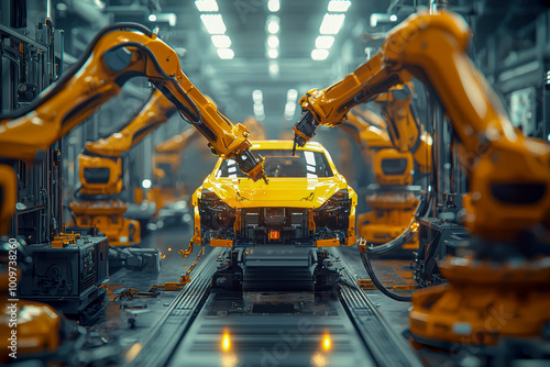 production, automated, assembly line, high technology, green energy, factory, industrial, conveyer, welding, technology, innovation, efficiency, sustainable, automotive, manufacturing, robotic, automation, renewable, energy, environmentally friendly, industry, electric car, assembly, line