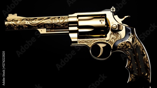 revolver, gold, gun, illustration, plated, design, unique, eye, catching, contrast, background, display, shine, luxury, weapon, metallic, ornate, decorative, collectable, firearm, glamourous, opulent, polished, gleaming, artistic, showpiece, exclusive, prestige, craftsmanship, exquisite, allure