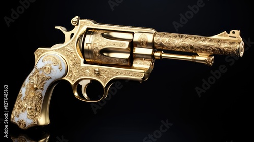revolver, gold, gun, illustration, ornate, pearl, handle, opulence, sophistication, luxury, firearm, weapon, elegance, craftsmanship, design, metallic, shine, collector, unique, rare, valuable, antique, polished, decorative, masterpiece, artistry, premium, exclusive, lavish