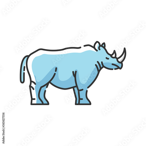Rhinoceros RGB color icon. Exotic horned animal, african fauna. Tropical zoo mascot, endangered species. Zoology, safari. Large rhino isolated vector illustration