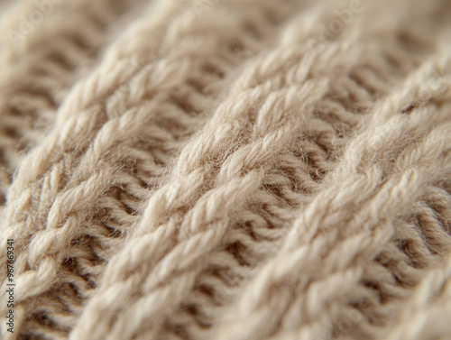 ribbing texture, alternating knit and purl stitches, in a soft, beige wool yarn