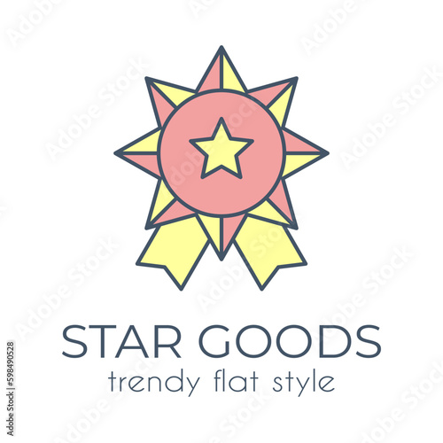 Ribbon badge with star on white background, simple icon in trendy flat style suitable for online stores, e-commerce, shop applications
