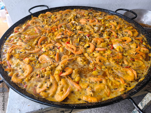Rica paella: Uma explosão de sabores com arroz, frutos do mar e legumes numa frigideira generosa