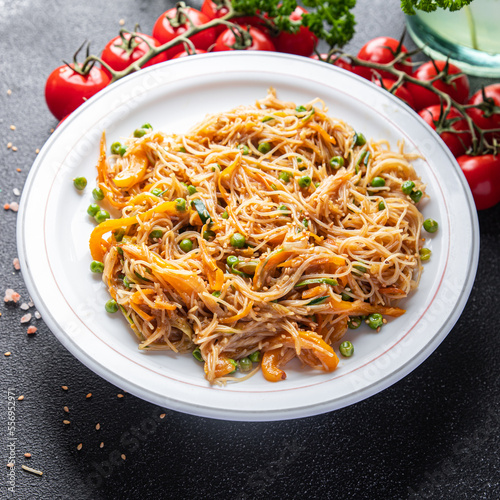 rice noodle vegetable Asian dish fresh funchose meal food snack on the table copy space food background rustic top view