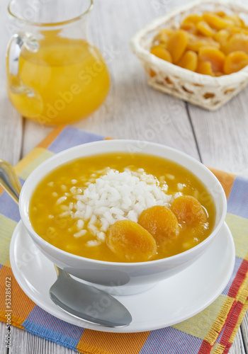 Rice soup with dried apricots