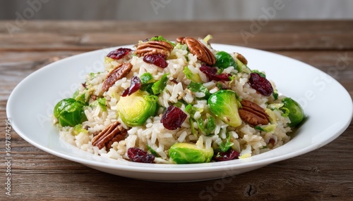 Rice with brussels sprouts, cranberries and pecans creating a colorful culinary masterpiece