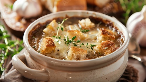 Rich and Savory French Onion Soup Topped with Golden Croutons