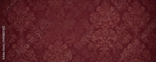 Rich burgundy damask wallpaper, intricate detailing, textile, shabby chic, wallpaper design