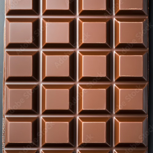 Rich milk chocolate bar with smooth texture and glossy finish, showcasing its square segments. Perfect for dessert lovers and chocolate enthusiasts