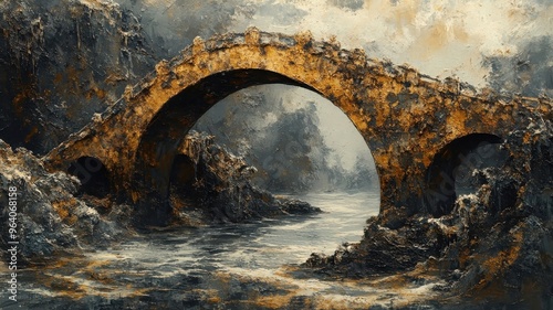 bridge, river, textured, pattern, style, rich, tactile, detail, intricate, surface, effect, illustration, design, visual