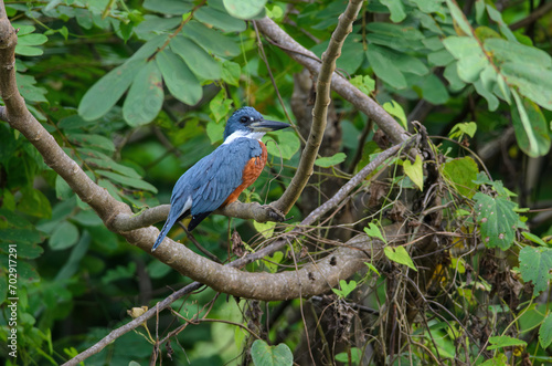 costa rica, kingfisher, ringed, perched, orange, central america, tree branch, panama, birding, animal, bird, environment, fauna, nature, ornithology, outdoors, swamp, tropical, water, wetland, wild, wildlife