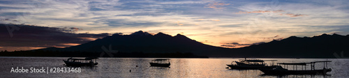 bali, indonesia, lombok, sunrise, sunset, ocean, beach, sun, morning, boat, shadow, panoramic, panorama