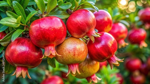pomegranate, fruit, red fruit, ripe, juicy, fresh, healthy, organic, natural, food, agriculture, garden, fruit farm, tree, tree branch, leaf, green leaf, closeup, macro, texture, pattern, autumn, harvest, vitamin, antioxidant, delicious, sweet, tart, seed, mediterranean, middle east, persian, grenada, granada, iran, india, asia, europa, africa, tropical, exotic, colourful, vibrant, nature, still life, background, wallpaper, food photography