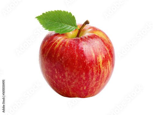 Ripe red apple with green leaf and water droplets fruit, Png Transparent, Isolated on White