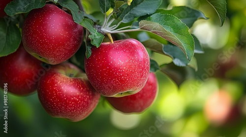 red, apple, apple, tree branch, tree, fruit farm, fruit, fruit, green, leaf, leaf, nature, ripe, harvest, fall, autumn, fresh, juicy, sweet, round, glossy, delicious, healthy, organic, farm, agriculture, background, closeup, sharpened, blurry, sunlight, vibrant, beautiful, summer, produce, bright, stem, growth, season, gardening, food, sweetness, snack, crisp, bite, favor, texture, natural