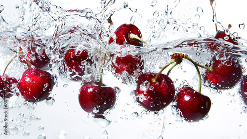 cherry, water, background, splash, red, berry, white, closeup, dynamic, ripe, drop, advertising, cooking, healthy eating, organic, natural, sweet, fresh, laundered, wet, transparent, juicy, vitamin, food, tasty, useful, clean, motion, product, flying, scarlet, poster, art, color image, colours, picture, design, artistic, imagination, creative, fantasy, illustration, splashing, freshness, bubble, dripped, liquid, healthy