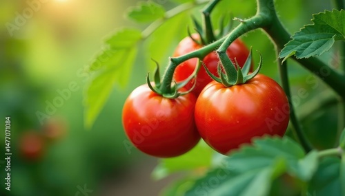 Ripe red tomatoes growing on the vine in a garden , agriculture, market