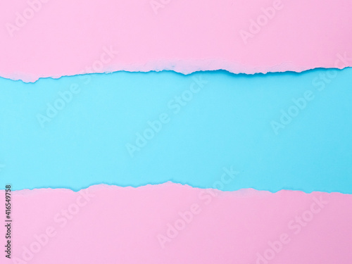 Ripped pink paper sheet. Blue sheet below. Copy space for text. Blank template.