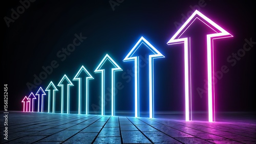 Rising Blue Glowing Arrows on Black: Visualizing Futuristic Growth