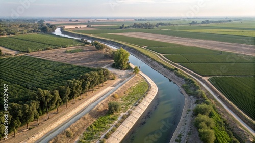 River Flowing Through Agricultural Valley with Irrigation Canals
