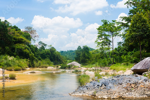river, asia, waterscape, nature, paradise, jungle, vale, scenery, scenic, dirty, stone, plant, flora, asian, daytime, countryside, summer, wild, peaceful, tour tourism, landscape, sunny, resort, brown, green, forest, travel, vacation, shallow, bright, horizontal, park, tropical, duck pond, adventure, water, bush, grass, journey, picturesque, saturated, rural, riverbed, coast, sky, coastline, shore, cloud, light