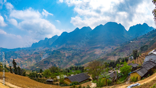Road side scenery in the Highlands of Vietnam in Ha Giang region