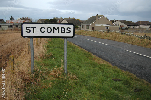 Road sign on entry to the Aberdeenshire village of St Combs.