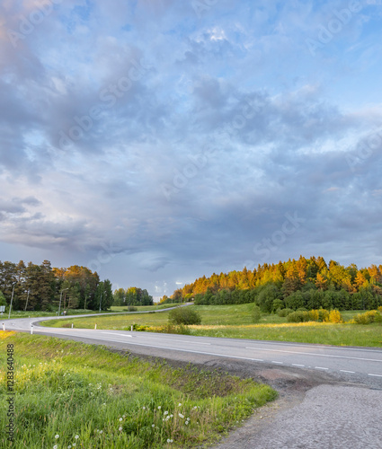 road, tree, background, cloudy, sky, mix, blue, landscape, grey, nature, cloud, grass, green, meadow, countryside, field, rural, summer, country, land, forest, season, day, horizon, beautiful, sunny, scene, view, autumn