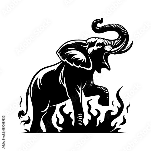 Roaring elephant Silhouette - Vector of Roaring elephant - Minimalist Roaring elephant Design.