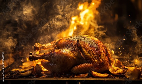 food, chicken, roast, bar-b-q, grill, cooking, fire, flames, smoke, dinner, meal, delicious, crispy, brown, onion, charred, culinary, heat, savoury, picnic, bar-b-q, epicure, backyard, preparation, protein, juicy, taste, favor, appetising, chef, rustic, seasoning, ash, holiday, event, celebration, feast