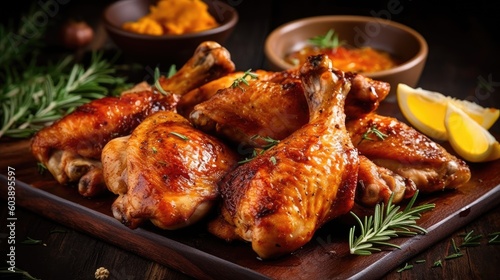 ai, generative, food, meat, chicken, meal, dinner, grilled, plate, dish, bar-b-q, bar-b-q, grill, roasted, lunch, sauce, cookery, delicious, roast, cooking, cooked, wing