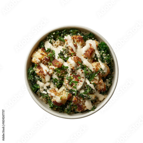 Roasted Cauliflower and Quinoa Bowl with Tahini Dressing and Kale