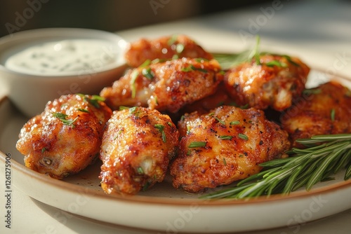 wing, chicken, rosemary, roasted, food, dip, kitchen, plate, delicious, meal, dinner, lunch, tasty, savoury, crispy, spicey, herb, garnish, cookery, cooking, receipe, eatery, bar-b-q, grill, meat, poultry, protein, healthy, snack, epicure, favor, aroma, photo, image, picture, background, texture, light, colours, style, eat, enjoy