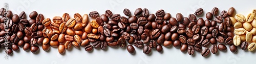 Roasted Coffee Bean Variety, From Light to Dark Gradient, Isolated on Plain White Studio Background
