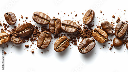 hot drink, bean, roasted, brown, ground, grain, dark, food, beverage, drink, cafes, espresso, breakfast, morning, aroma, energy, caffeinated, rich, delicious, texture, scattered, isolated, white, background, studio, shot, photo, still, life, closeup, top, view, product, commercial, advertising, marketing, website, banner, header, image, design, element, template, pattern, detail, natural, organic, epicure