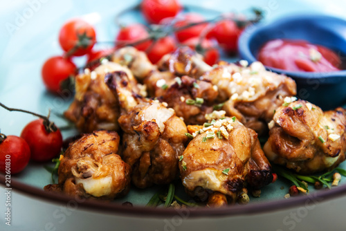roasted sleeves chicken with potatoes and barbecue sauce