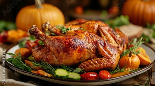 turkey, vegetable, roast, dinner, autumn, pumpkin, herb, feast, meal, cookery, holiday, garnish, presentation, table, cooking, celebration, favor, food, platter, festive, delicious, orange, green, rustic, seasonal, dining, family, gathering, culinary, receipe, ingredient, fresh, edible, garnishing, vibrant, picnic, warmth, inviting, hearty, savoury, traditional, spice, texture, aroma, enjoyment, hospitality, sharing, comfort, culture