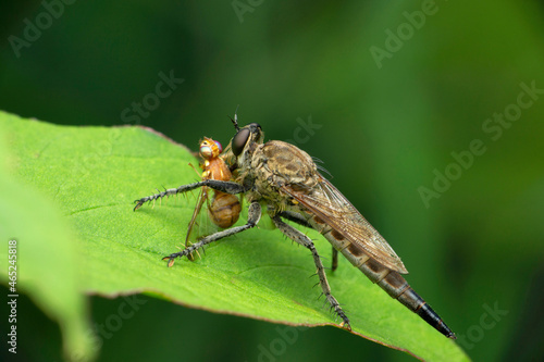 Robberfly, Zosteria species with fruit fly kill, Satara, Maharashtra, India