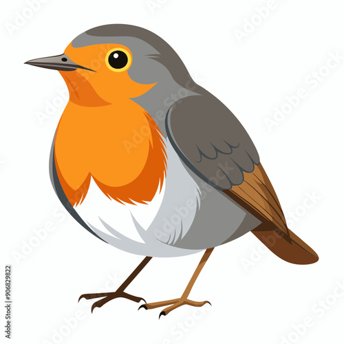 Robin on a branch, robin vector illustration, robin vector art, robin silhouette, bird vector icon, eps