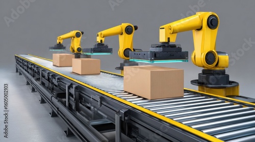 robotic, arm, conveyer, belt, automation, pecking, place, technology, industry, machine, production, efficiency, workspace, handling, logistic, equipment, yellow, transport, system, box, load, innovation, control, mechanism, assembly, process, tool, productivity, factory, design