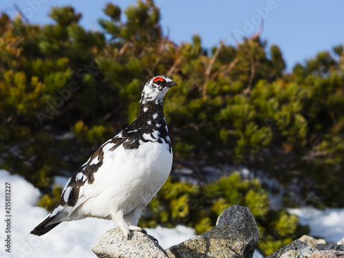 縄張りを見張るライチョウ雄(rock ptarmigan)