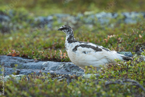Rock ptarmigan walking during a summer night in Urho Kekkonen National Park, Northern Finland