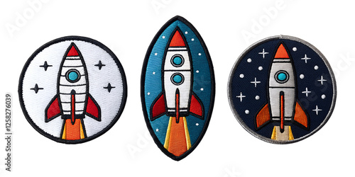 Rocket Embroidered Patch Badge on White, Fun Space Travel Patch Designs, PNG Transparent